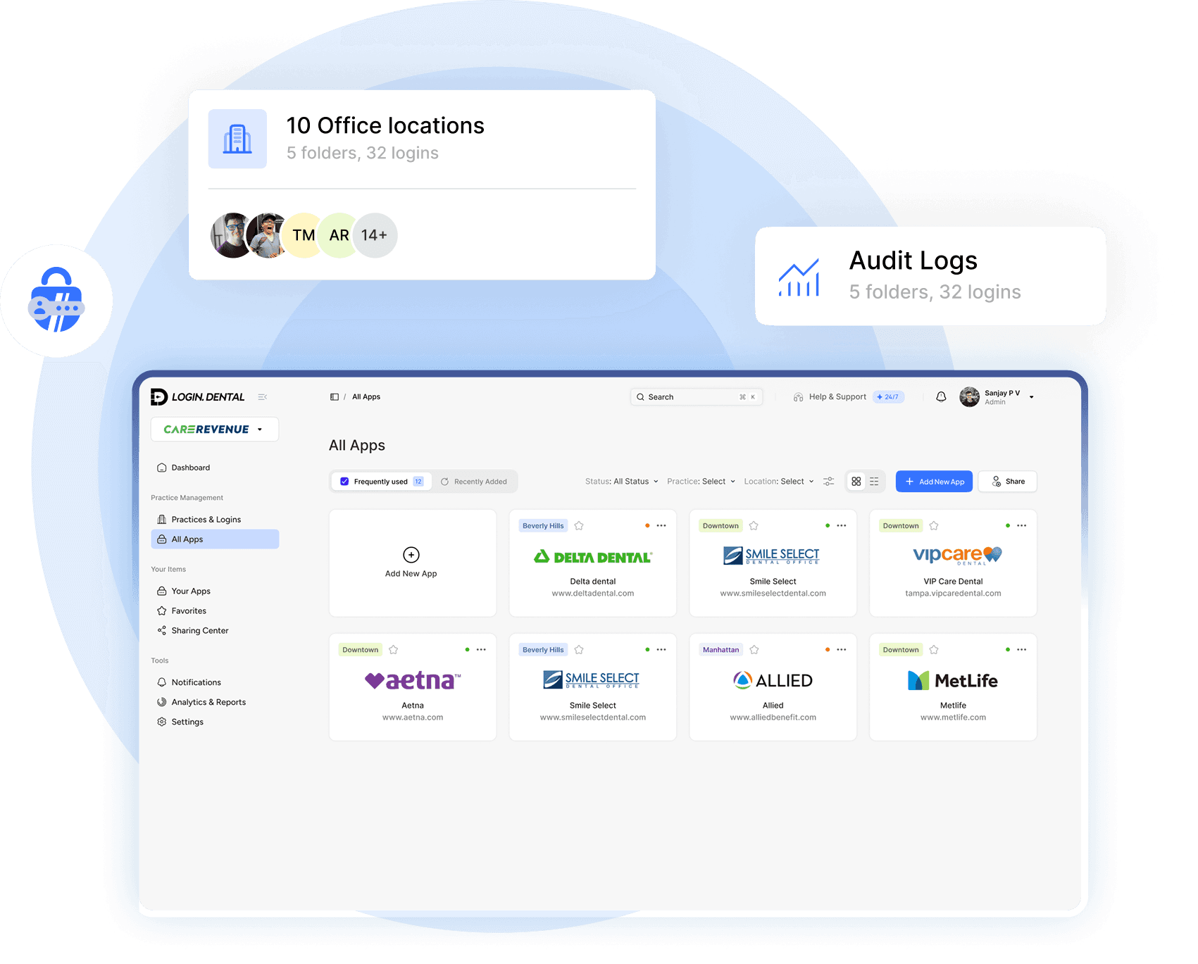 Login Dental is a credential management system designed for dental practices, DSOs and RCM teams. It enables secure access to insurance portals, PMS platforms and multi-location environments without compromising visibility or control.
